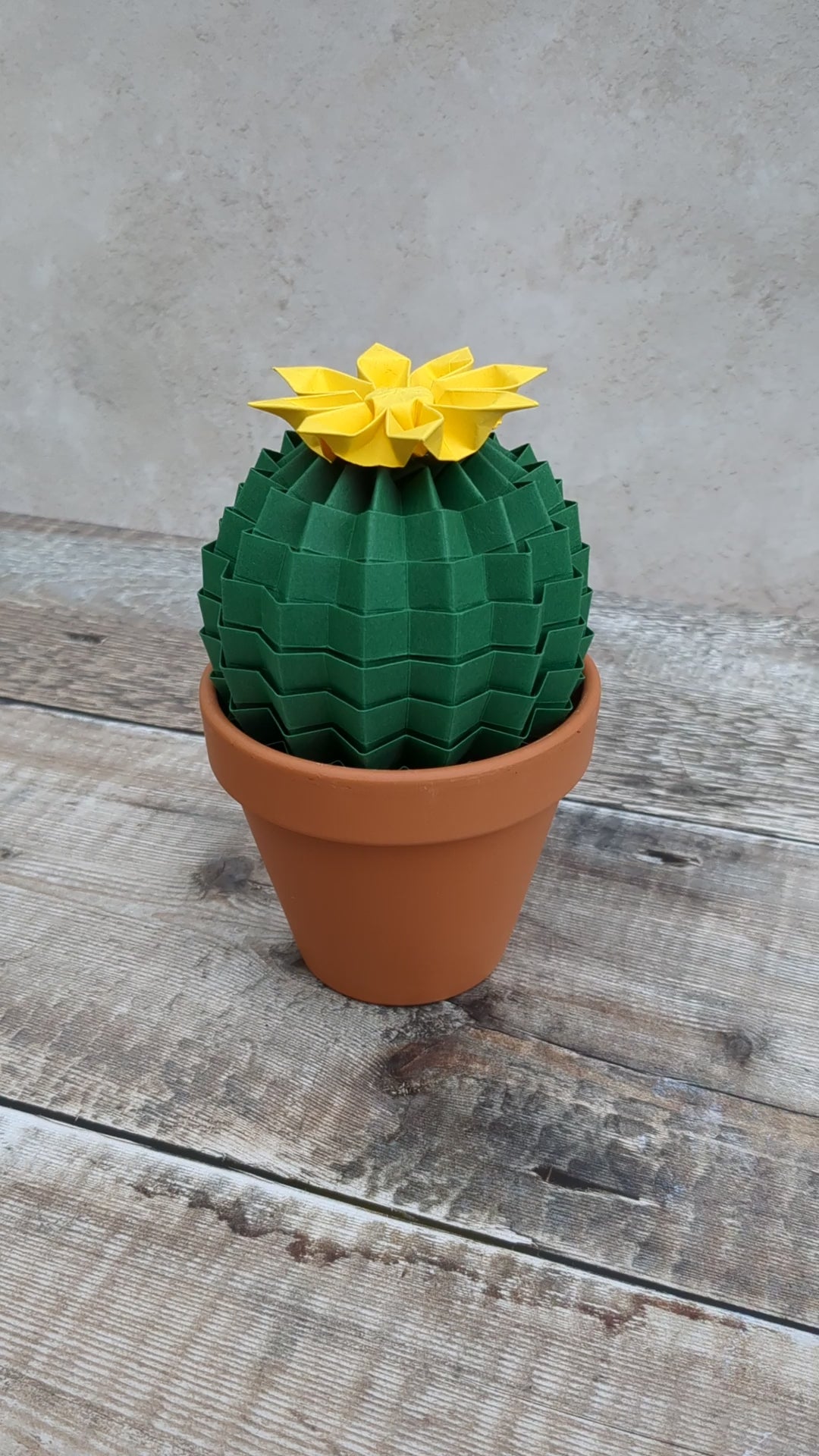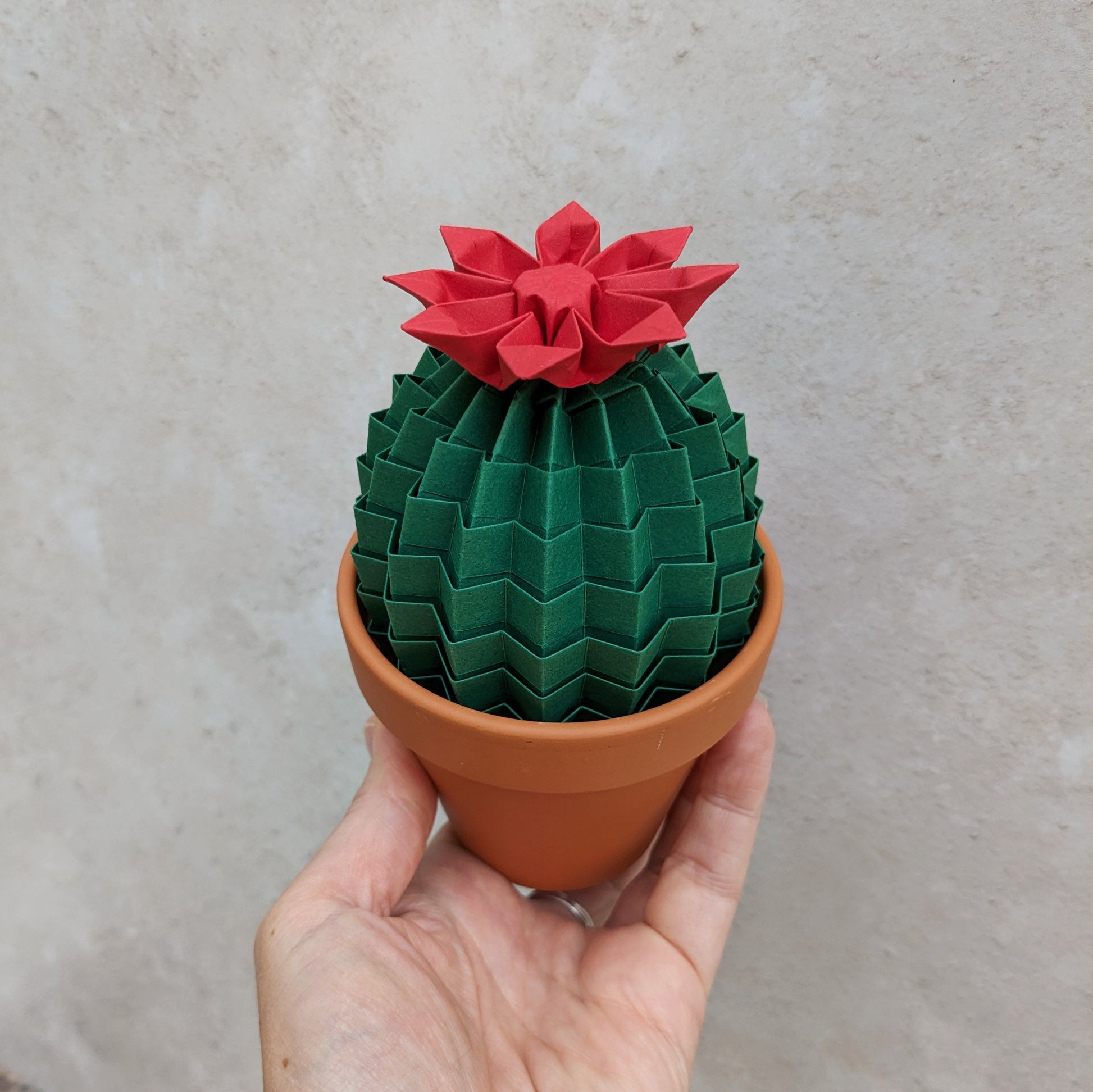 This is a unique handmade large origami cactus folded from dark green recycled paper, presented in a terracotta pot. It is decorated with a paper flower with eight petals - choose from 12 flower colour options. It's the perfect birthday present for a cactus lover - this design is exclusive to Origami Blooms so they won't have one like this in their collection! This beautiful faux cactus is eco- and vegan-friendly and looks so cute on a shelf or desk in your home office. It's a fabulous gift for your friend who struggles to keep real plants alive - because there's no need to water it!