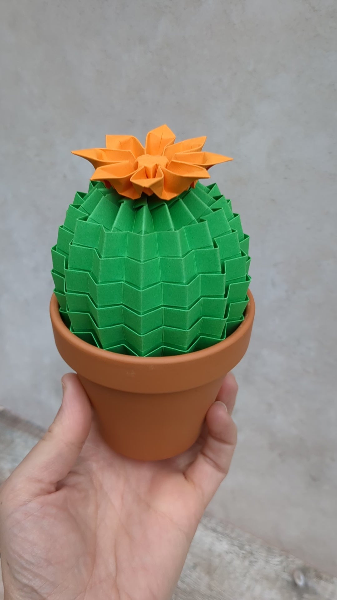 Green origami flowering cactus, large paper pot plant gift