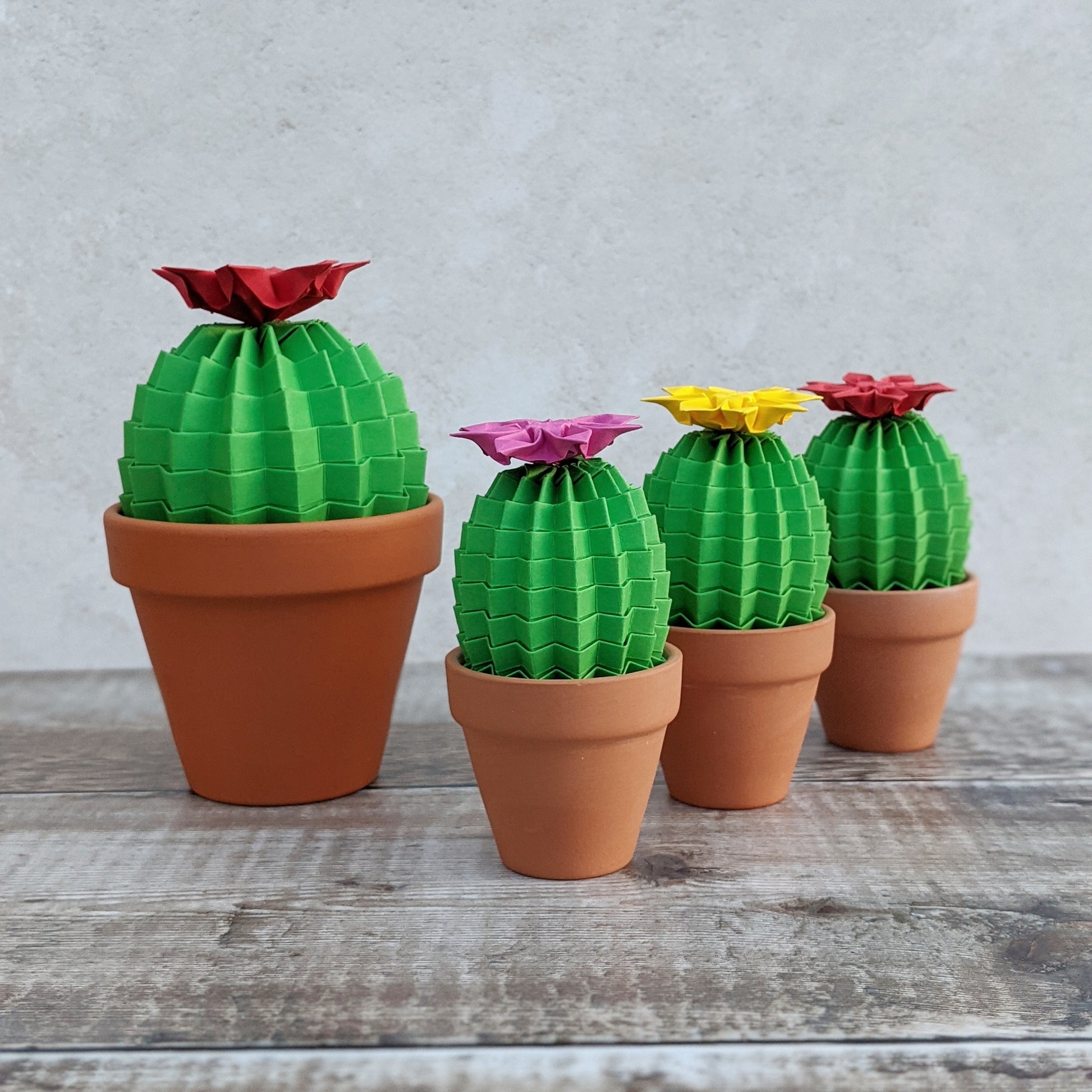 Isn't it just the most adorable?! This is a mini origami cactus handmade from green recycled paper, planted in a terracotta pot and decorated with a cute paper flower. I designed this unique baby cactus to bring a little pop of everlasting colour into your life. There's no need to water it so it's a great gift for even the most accomplished plant killer! It would look so cute on a shelf or desk in your home office. It's the perfect birthday present for your cactus addict friend. And it makes a brilliant teacher gift too.